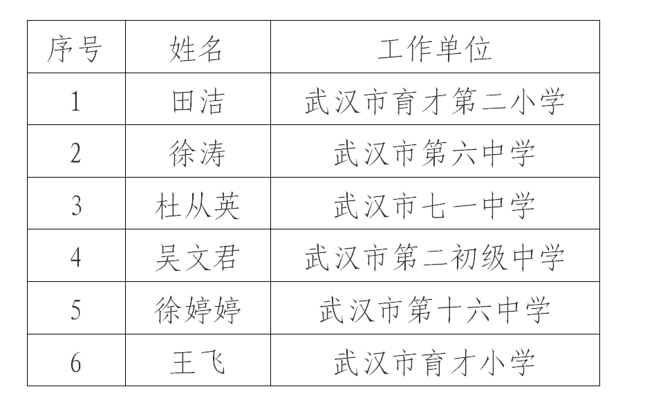 根据市教育局《关于开展2022年“武汉英才”计划培育支持专项教育领域人才申报的通知》有关要求,经个人自荐,单位评议推荐,区教育局评审推荐,拟确定以下6人为我区推荐人选(具体名单附后)。按照工作程序,现将推荐人选结果面向社会公示七天,公示时间2022年10月25日至2022年11月1日。公示期间如有异议,可向区教育局反映。