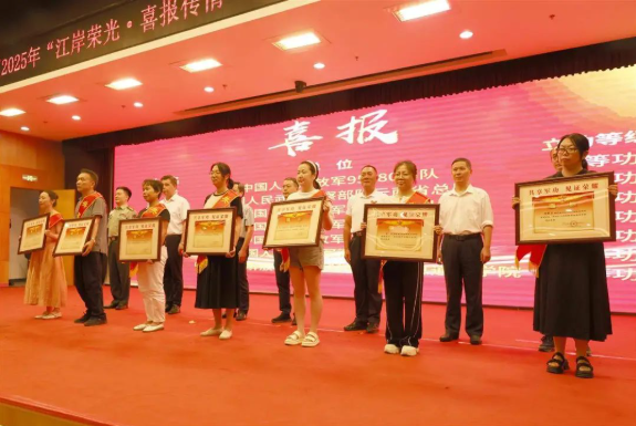 7月11日,武汉市江岸区人武部与区退役军人事务局在市民之家共同开展2025年“江岸荣光·喜报传情”立功喜报集中送达仪式。