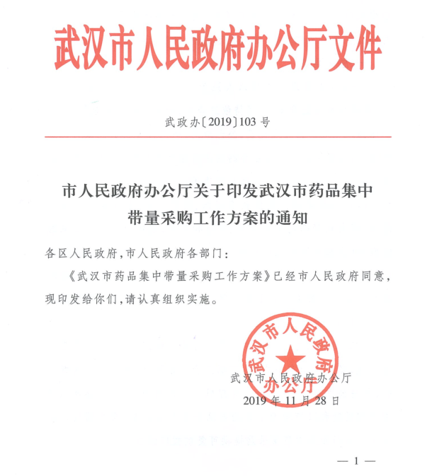 《武汉市药品集中带量采购工作方案》(武政办(2019)103号)
