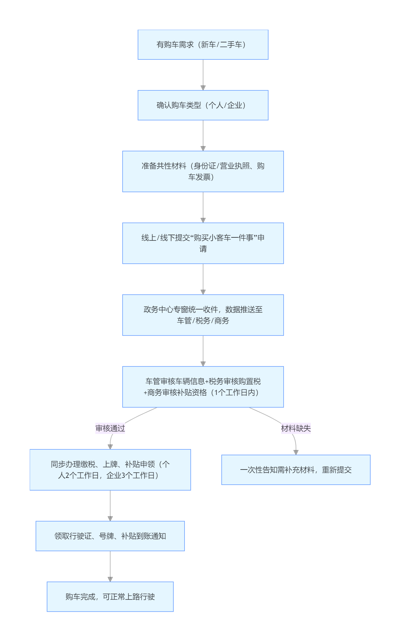 4.审核通过后,系统自动推送至税务部门缴纳购置税(个人 1 个工作日、企业 2 个工作日),同步推送至车管所办理上牌(个人 2 个工作日、企业 3 个工作日);