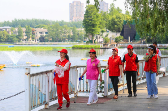 周桂珍说,夏日湖边蚊虫叮咬、冬天路面寒冷湿滑,但是队员们从不抱怨,头戴小红帽、身穿红马甲、手持垃圾夹,巡湖护湖,还会配合物业公司在湖边补种花花草草。在大家共同努力下,塔子湖的栈道卫生和水质越来越好,已然成为周边居民散步锻炼的好去处,“居民们都夸梦湖护湖志愿服务队是塔子湖的风景线咧!”