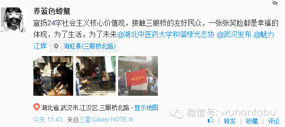 @养蓝色螃蟹:宣扬24字社会主义核心价值观,接触三眼桥的友好民众,一张张笑脸都是幸福的体现,为了生活,为了未来