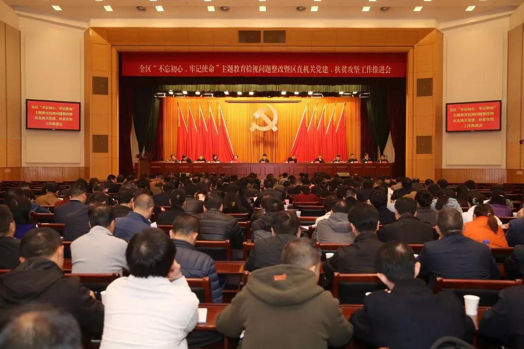 为深入学习习近平新时代中国特色社会主义思想,认真贯彻落实党的十九届四中全会精神,11月20日,江岸区召开“不忘初心、牢记使命”主题教育检视问题整改暨区直机关党建、脱贫攻坚工作推进会议,扎实推进全区“不忘初心、牢记使命”主题教育检视问题整改工作,研究部署区直机关党的建设工作,总结部署脱贫攻坚工作,奋发有为,真抓实干,全力以赴推动党中央决策部署和省委、市委各项要求落地见效。区委书记王炜出席会议并讲话,区长张忠军主持会议,区四大家领导出席会议,区直各部门、区委主题教育领导小组办公室、区委巡回指导组、各街道主要负责同志,全体驻村干部参会。
