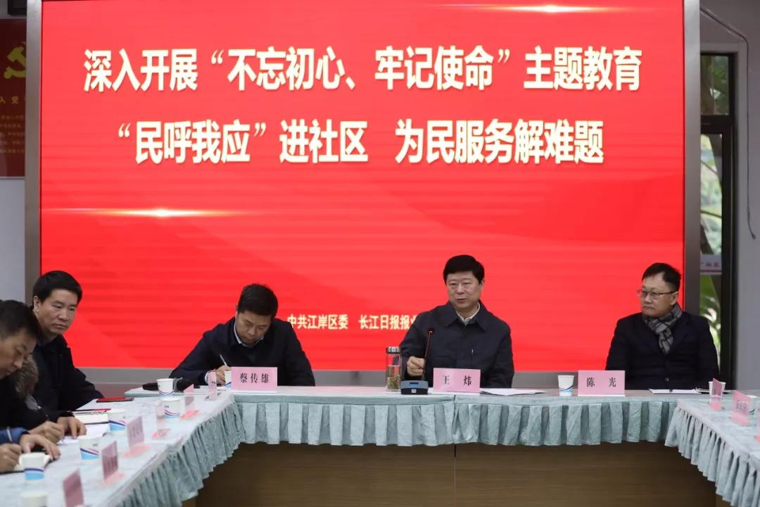 面对面现场结束后,王炜来到汉广社区居委会,召开现场办公会。江岸区各职能部门负责人以及同安社区、惠民苑社区、汉广社区、海赋江城社区四个社区的党组织书记参加。