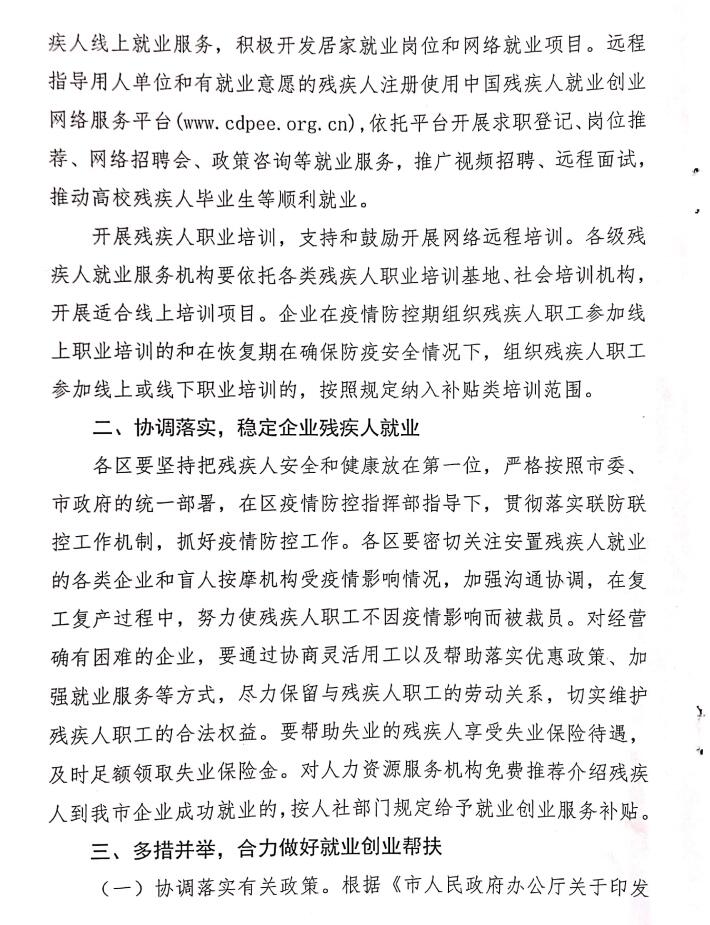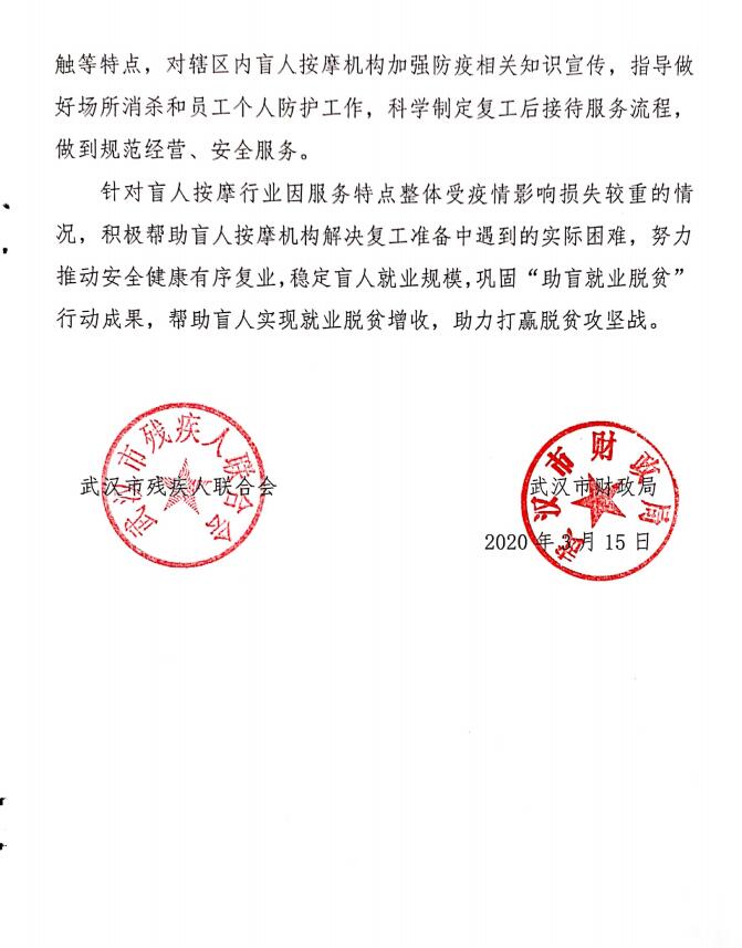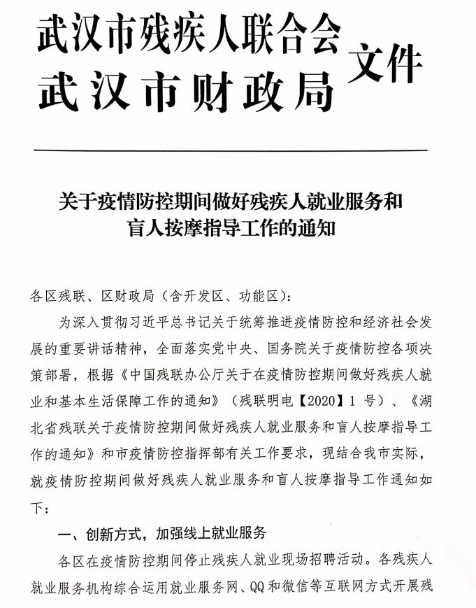 市残联市财政局关于疫情防控期间做好残疾人就业服务和盲人按摩指导工作的通知