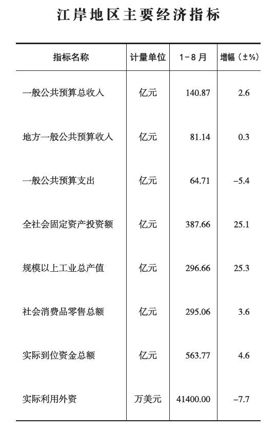 2022年1-8月江岸地区主要经济指标