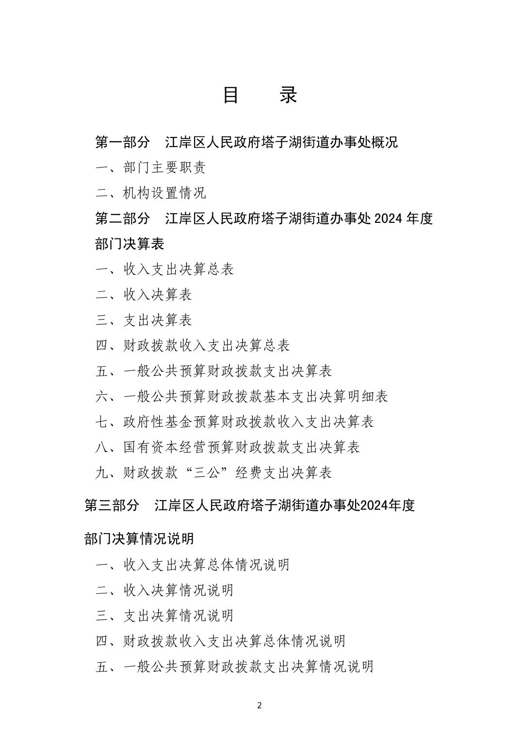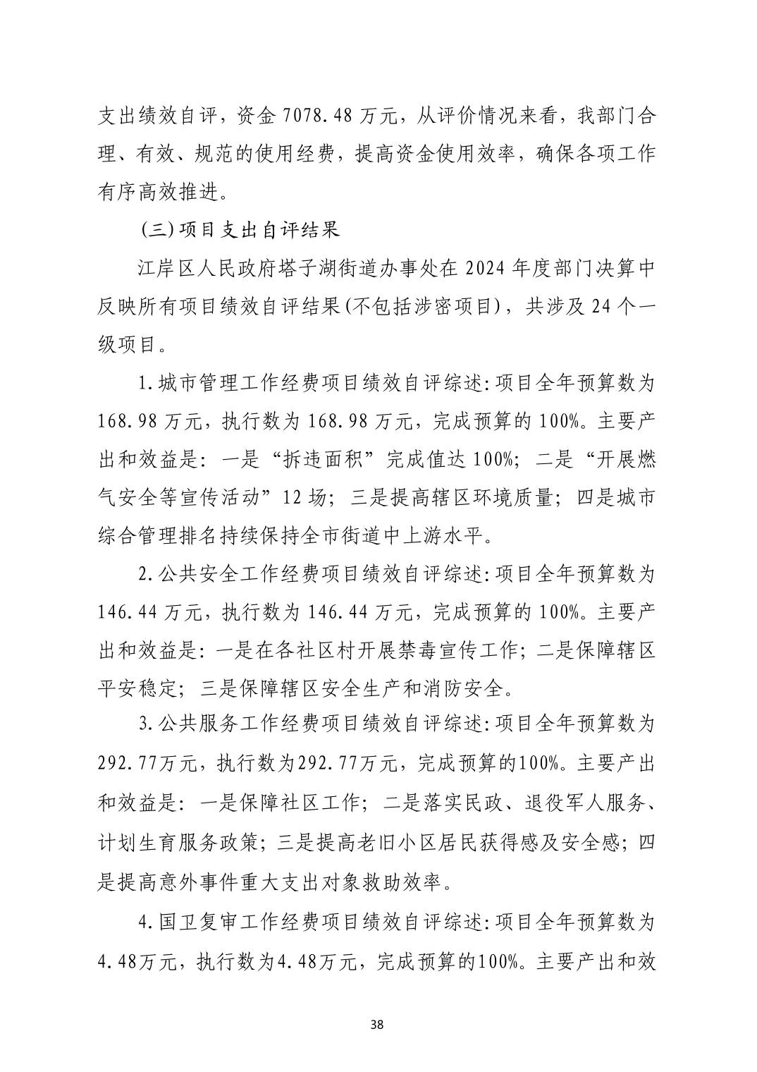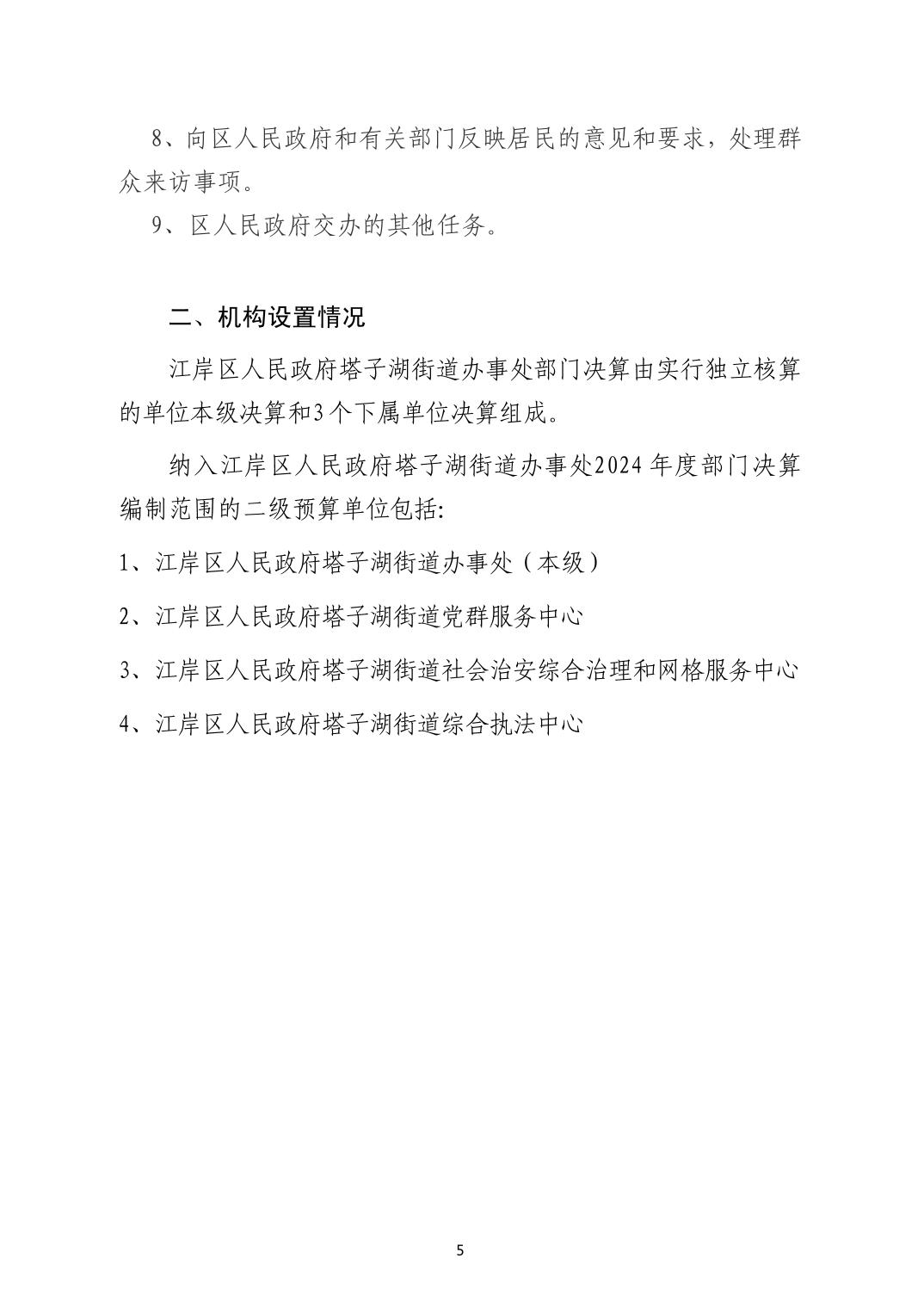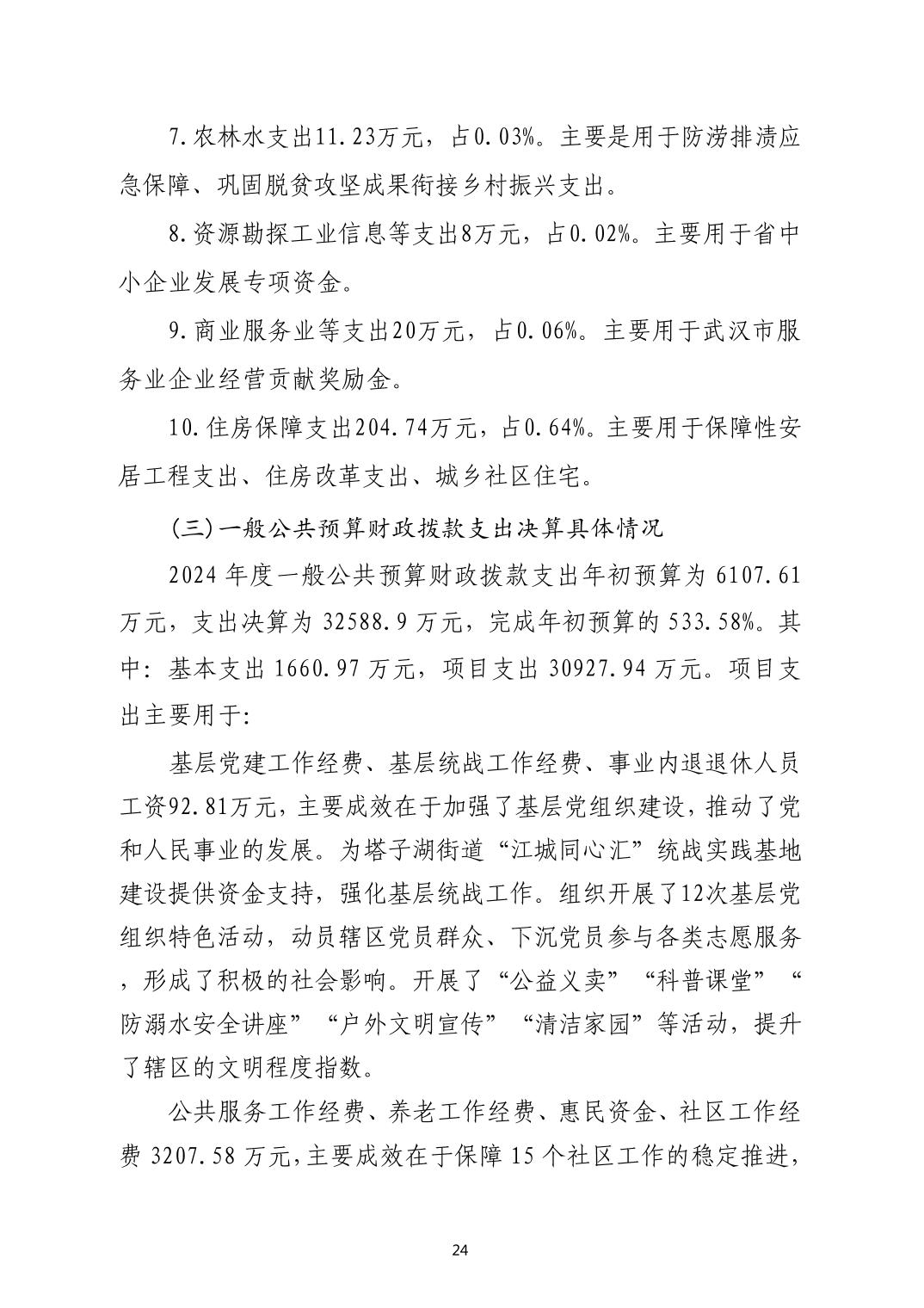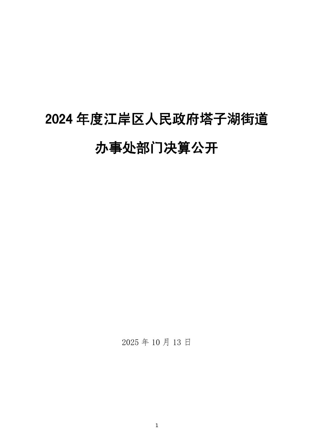 2024年度江岸区人民政府塔子湖街道办事处部门决算公开