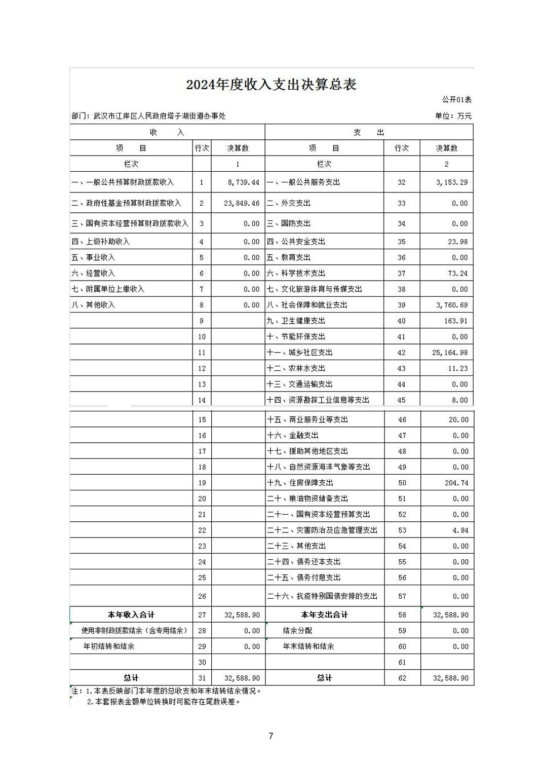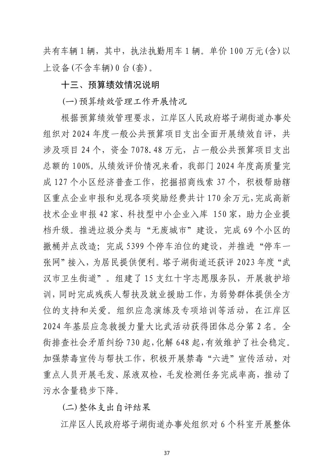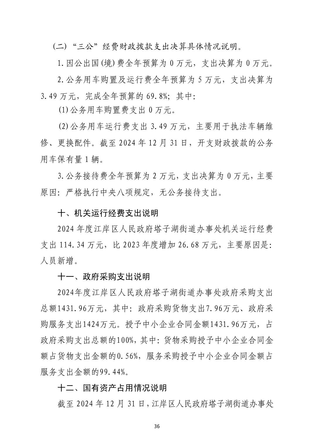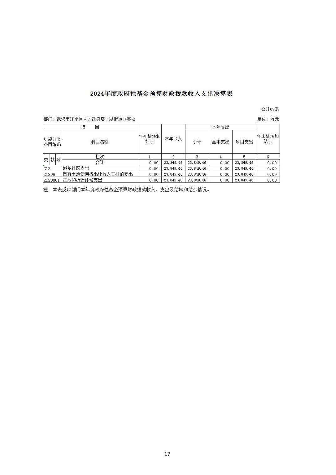 2024年度江岸区人民政府塔子湖街道办事处部门决算公开