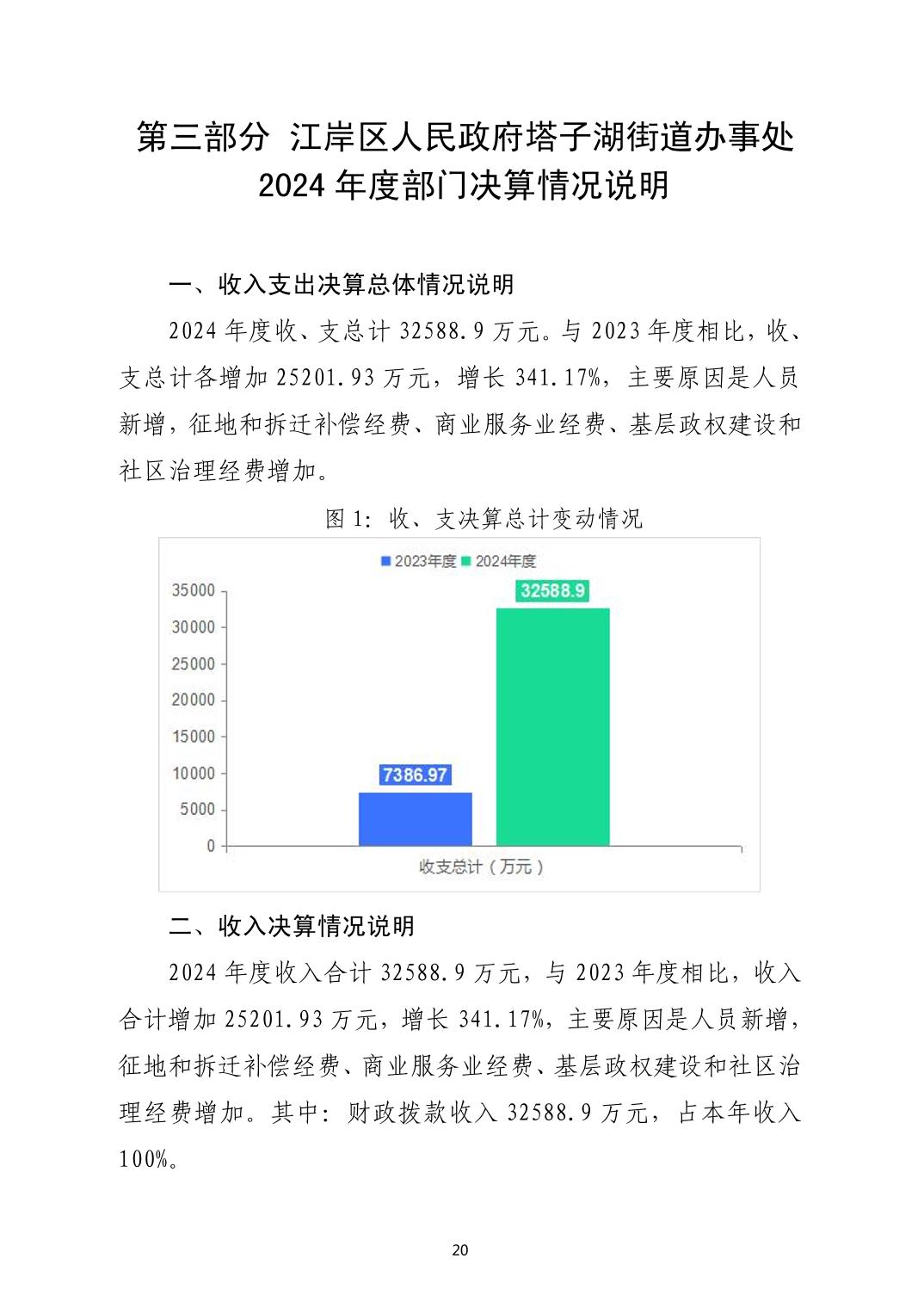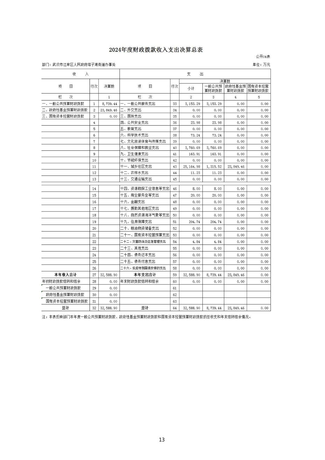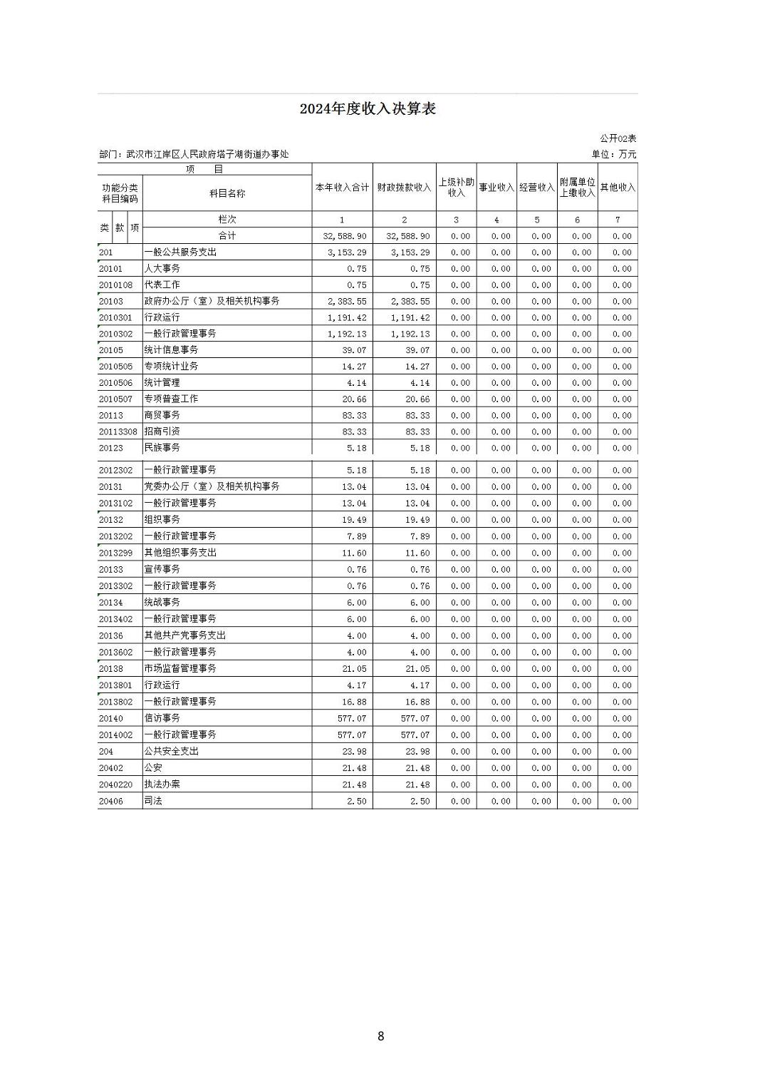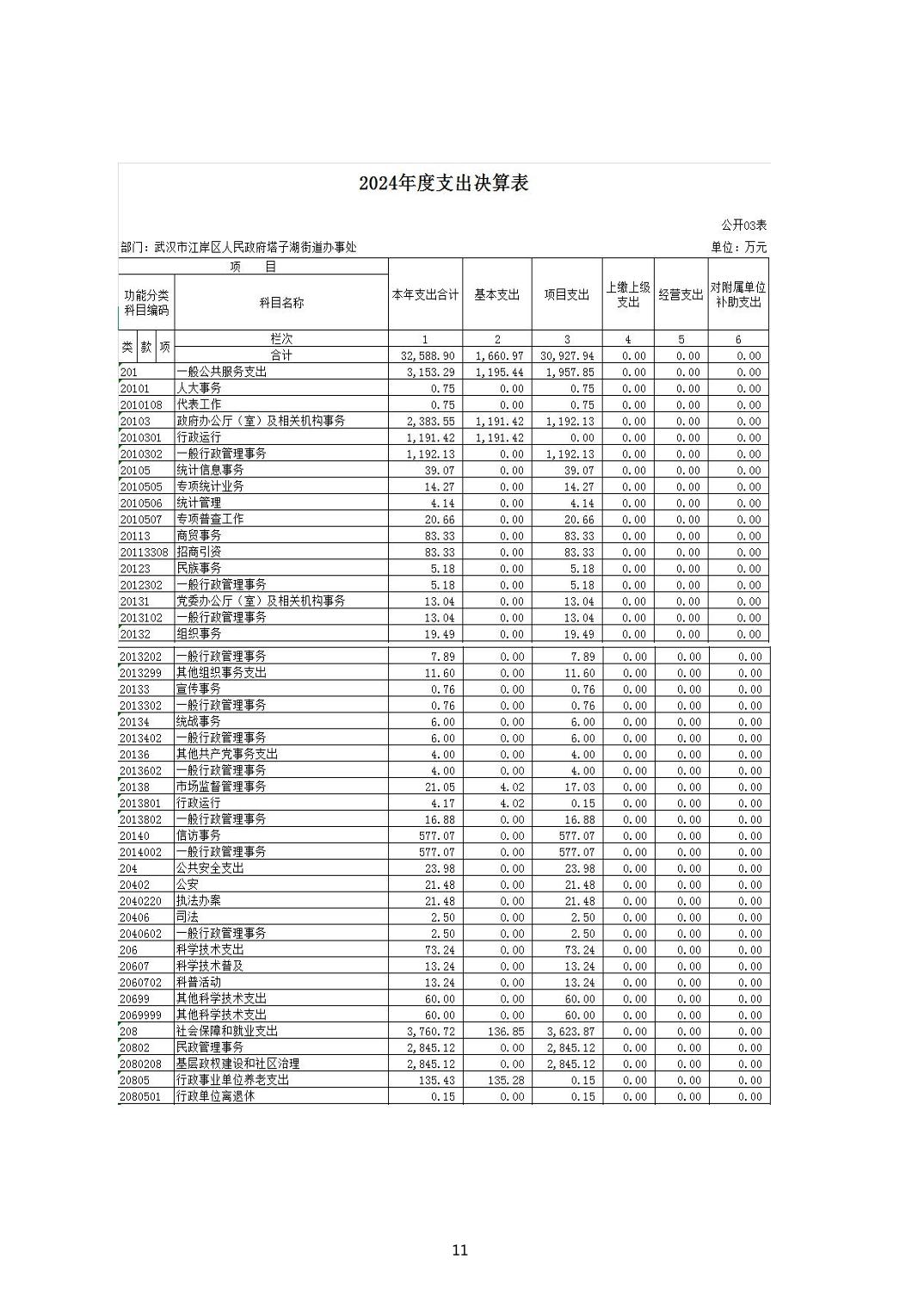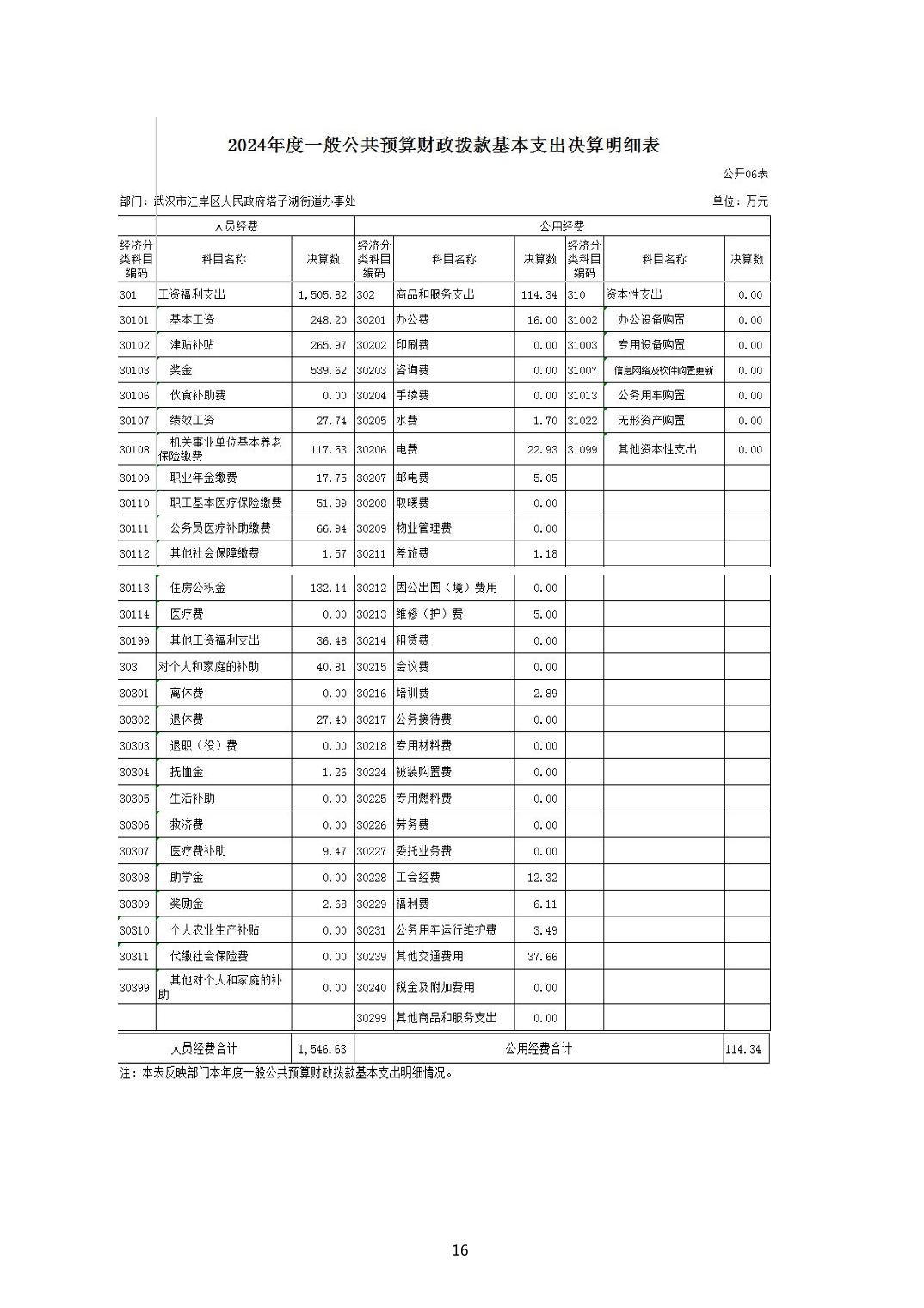 2024年度江岸区人民政府塔子湖街道办事处部门决算公开