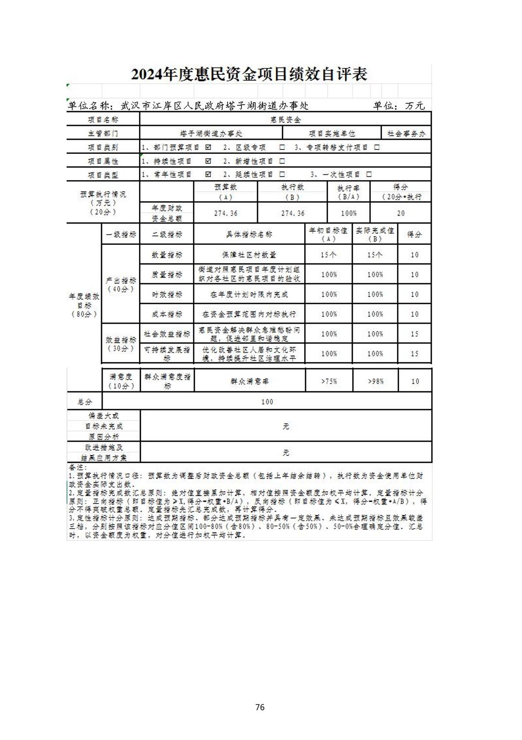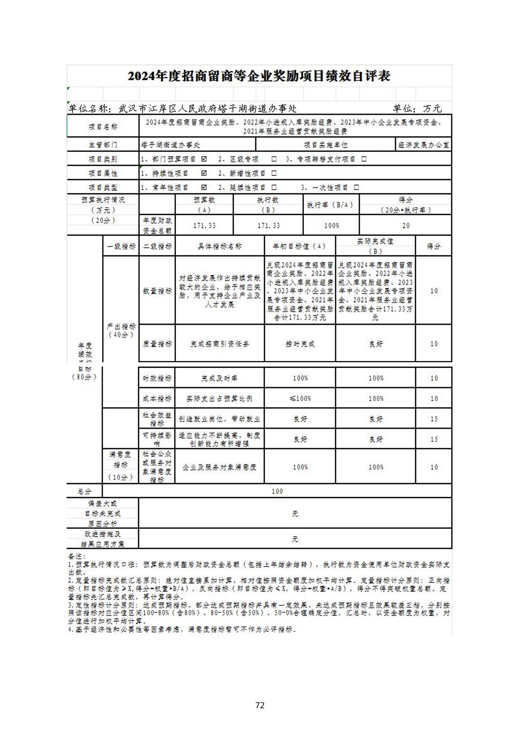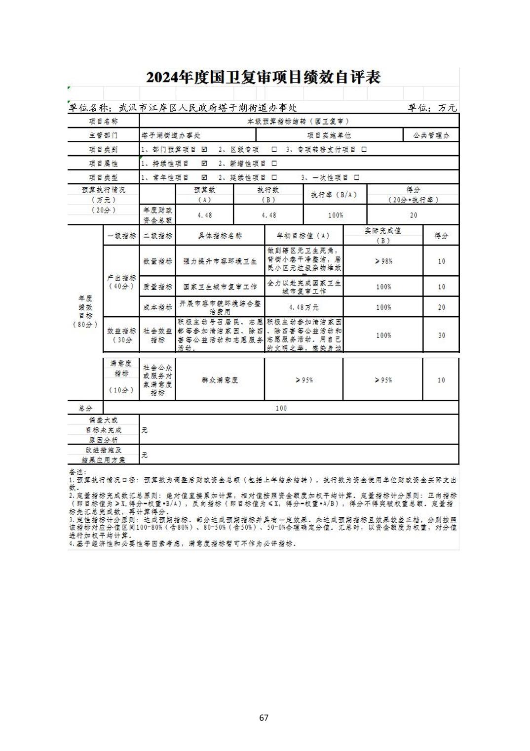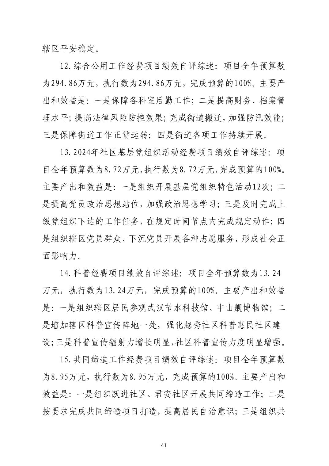 2024年度江岸区人民政府塔子湖街道办事处部门决算公开