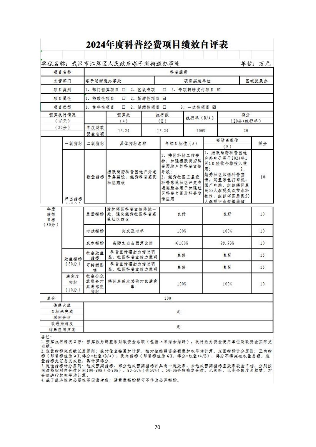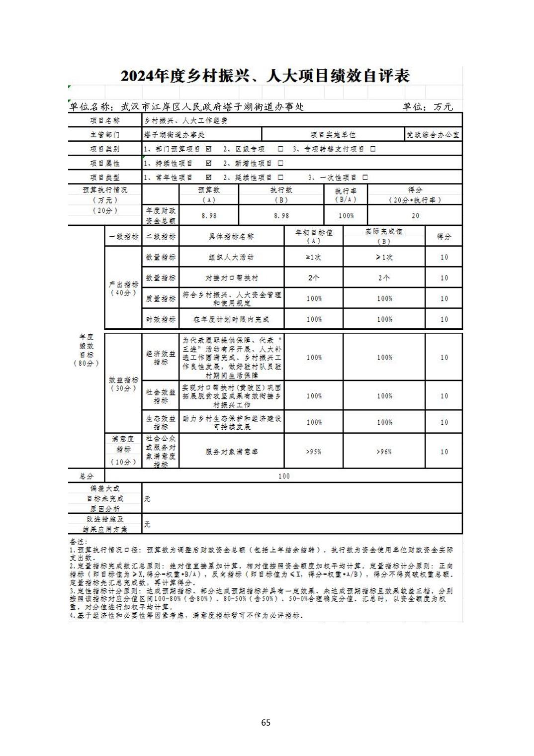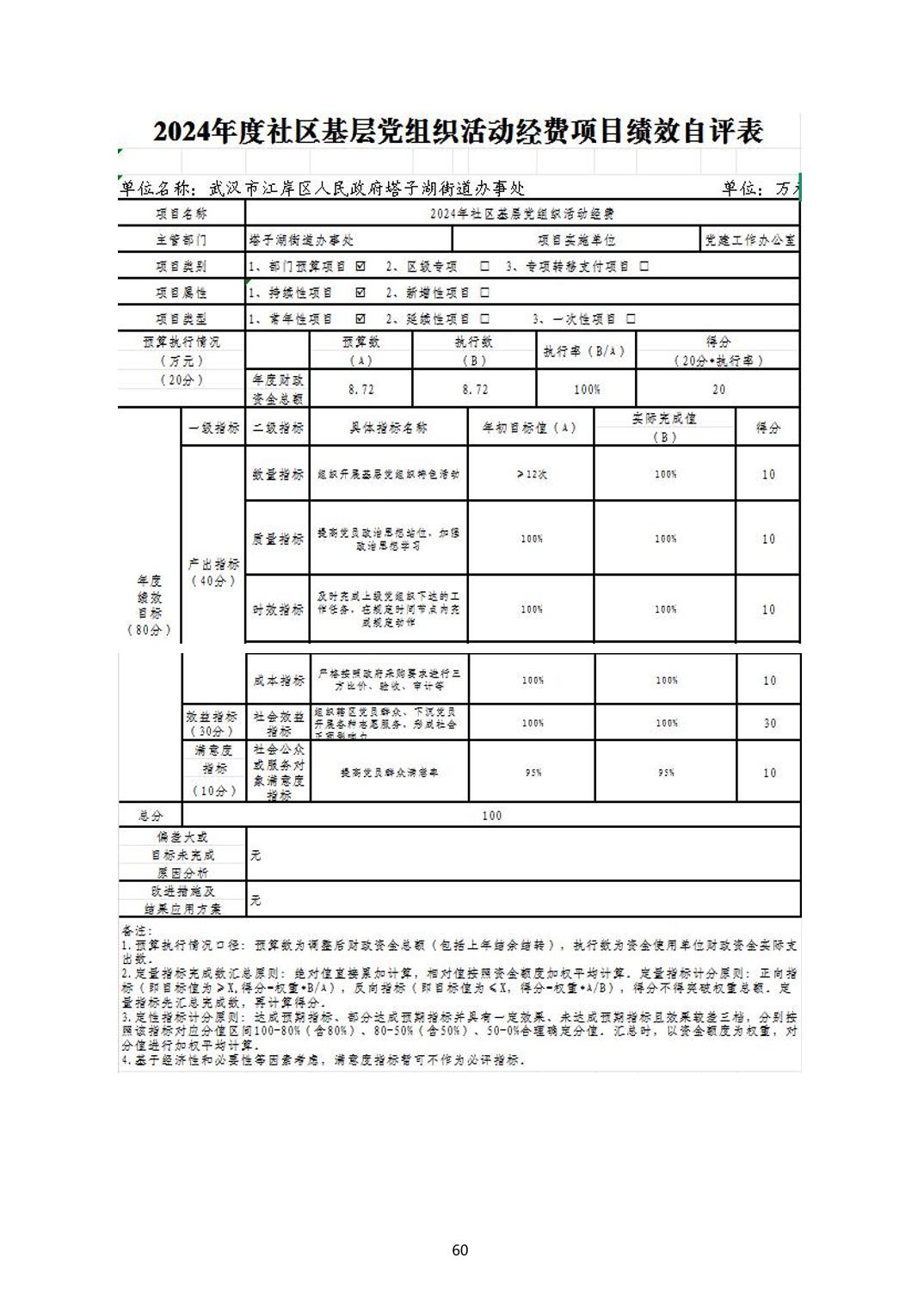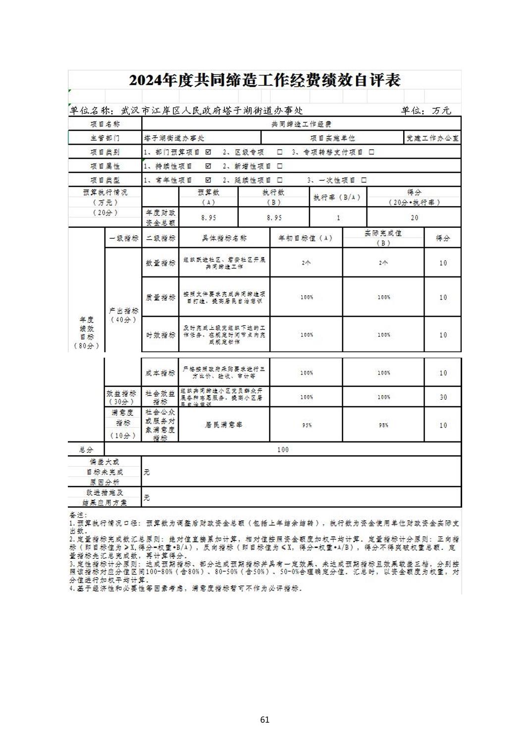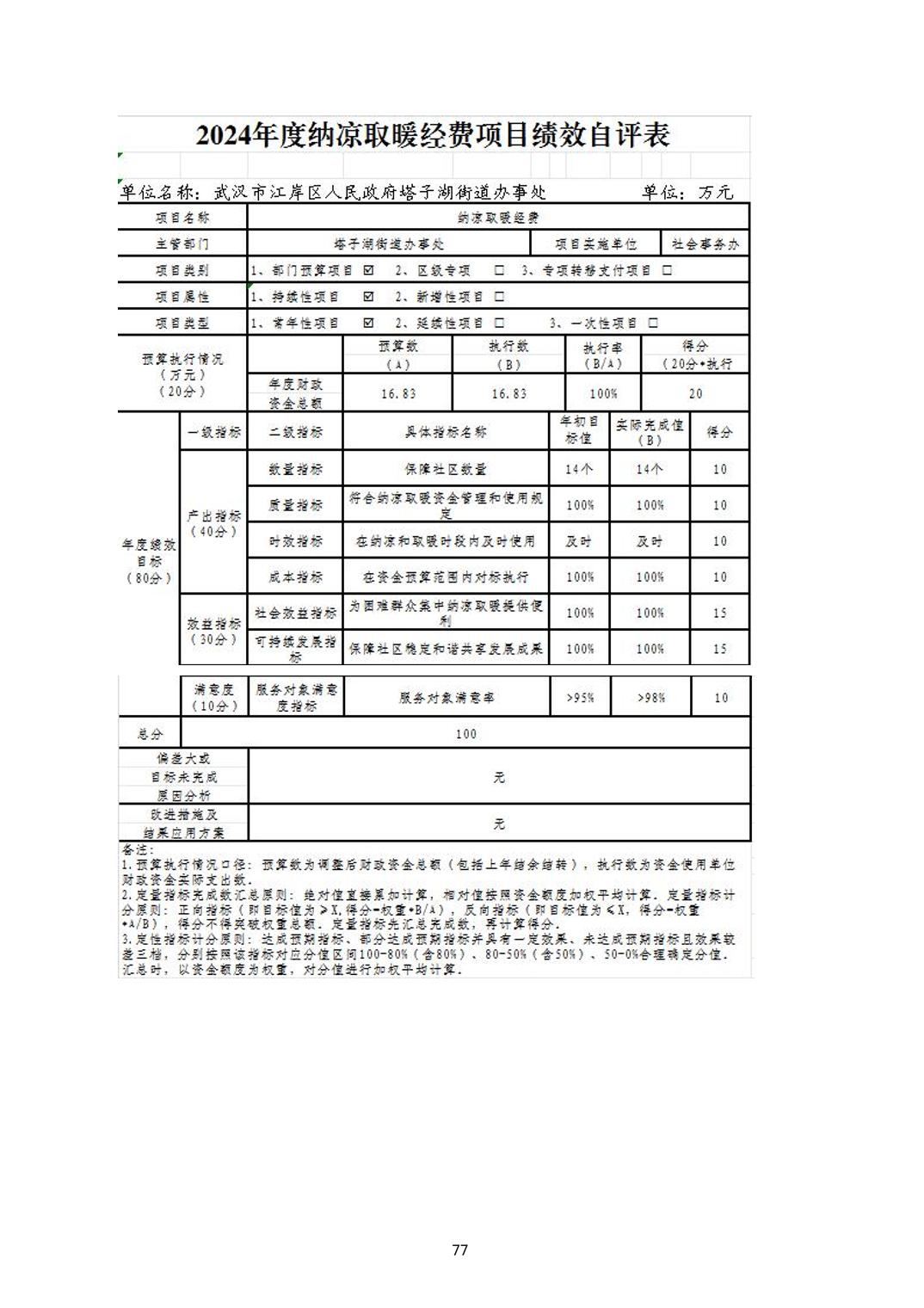 2024年度江岸区人民政府塔子湖街道办事处部门决算公开